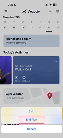 Tap the 3 dots, select "End Plan"